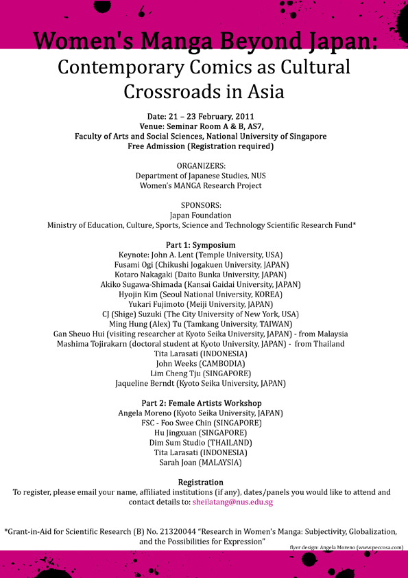 We hope our international and transcultural approach to women as subjects of sequential art and manga, a new style of visual narrative, will suggest likely points of common interest for various cultures and readers far beyond Japan. The symposium approaches "women's manga/comics" in an inter- as well as transcultural way in order to explore common scholarly interests related to sequential art in general and manga in particular.